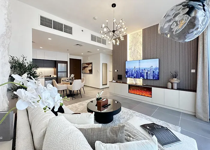 El Trophy - Ultra Luxury Suite With Fireplace Dubái está situado a unos 20 minutos en coche de la Ciudad Festival de Dubai, y a una distancia de 4 km del Parque Creek. Este apartamento de 64 m^2 también dispone de Wi-Fi y un aparcamiento privado gratuito.
